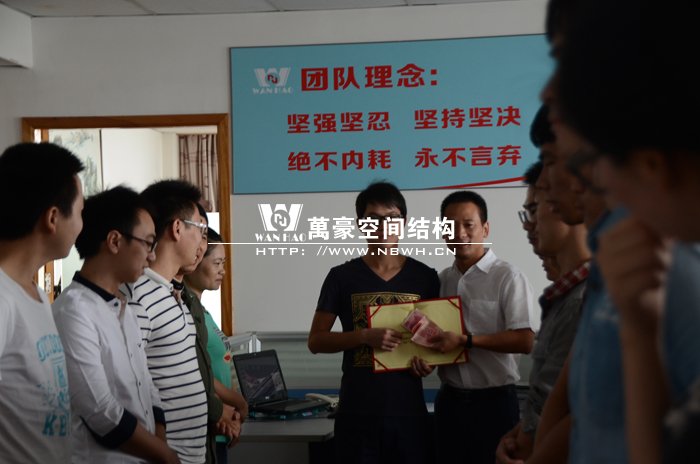 公司為工程部阮經(jīng)理頒發(fā)獎勵