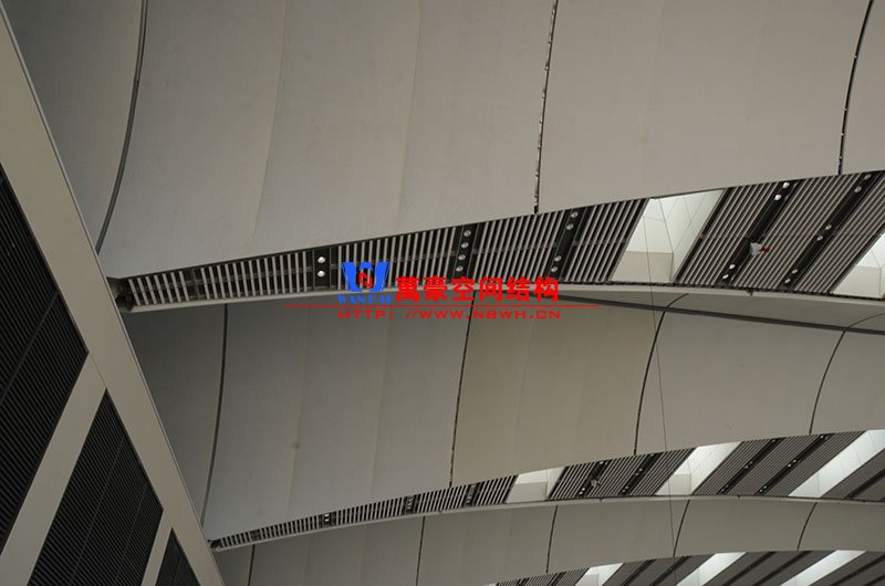 青島紅島國(guó)際會(huì)議中心幕墻膜結(jié)構(gòu)工程,由寧波萬(wàn)豪空間結(jié)構(gòu)工程有限公司承建,現(xiàn)場(chǎng)測(cè)量、深化設(shè)計(jì)、制作及安裝由寧波萬(wàn)豪全權(quán)負(fù)責(zé)。該工程用鋼量1000多噸,PTFE室內(nèi)屋面膜結(jié)構(gòu)展開(kāi)面積17000多平方米,PTFE室外屋面膜結(jié)構(gòu)展開(kāi)面積20000多平方米。
