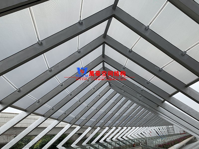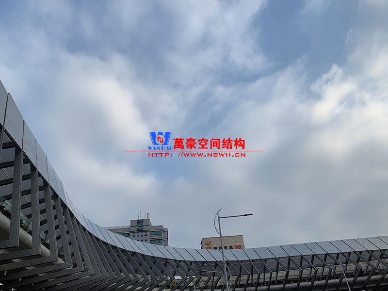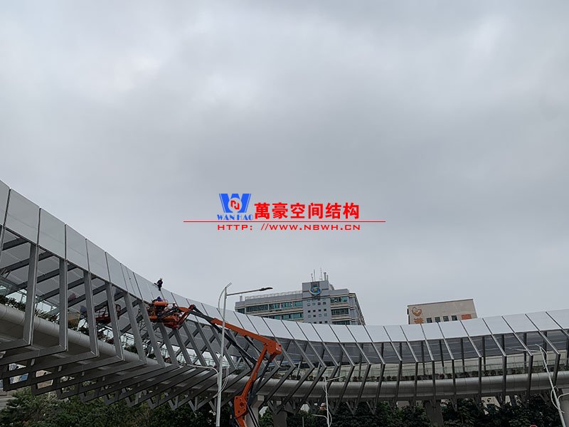 深圳龍崗三館一城項(xiàng)目市政配套工程1號(hào)連廊膜結(jié)構(gòu)工程項(xiàng)目為單層ETFE膜結(jié)構(gòu),共劃分為101個(gè)單元,總面積約為2000㎡,由寧波萬豪空間結(jié)構(gòu)工程有限公司承建。