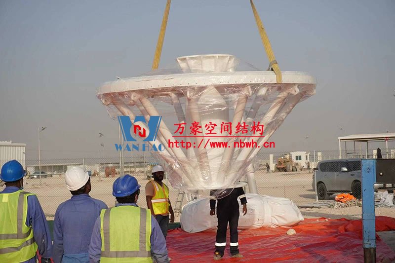卡塔爾駱駝市場膜結(jié)構(gòu)項目位于卡塔爾國(卡塔爾是亞洲西南部的一個阿拉伯國家,位于波斯灣西南岸的卡塔爾半島上,南面與沙特接壤),該項目膜結(jié)構(gòu)展開面積2000平米,用鋼量100噸