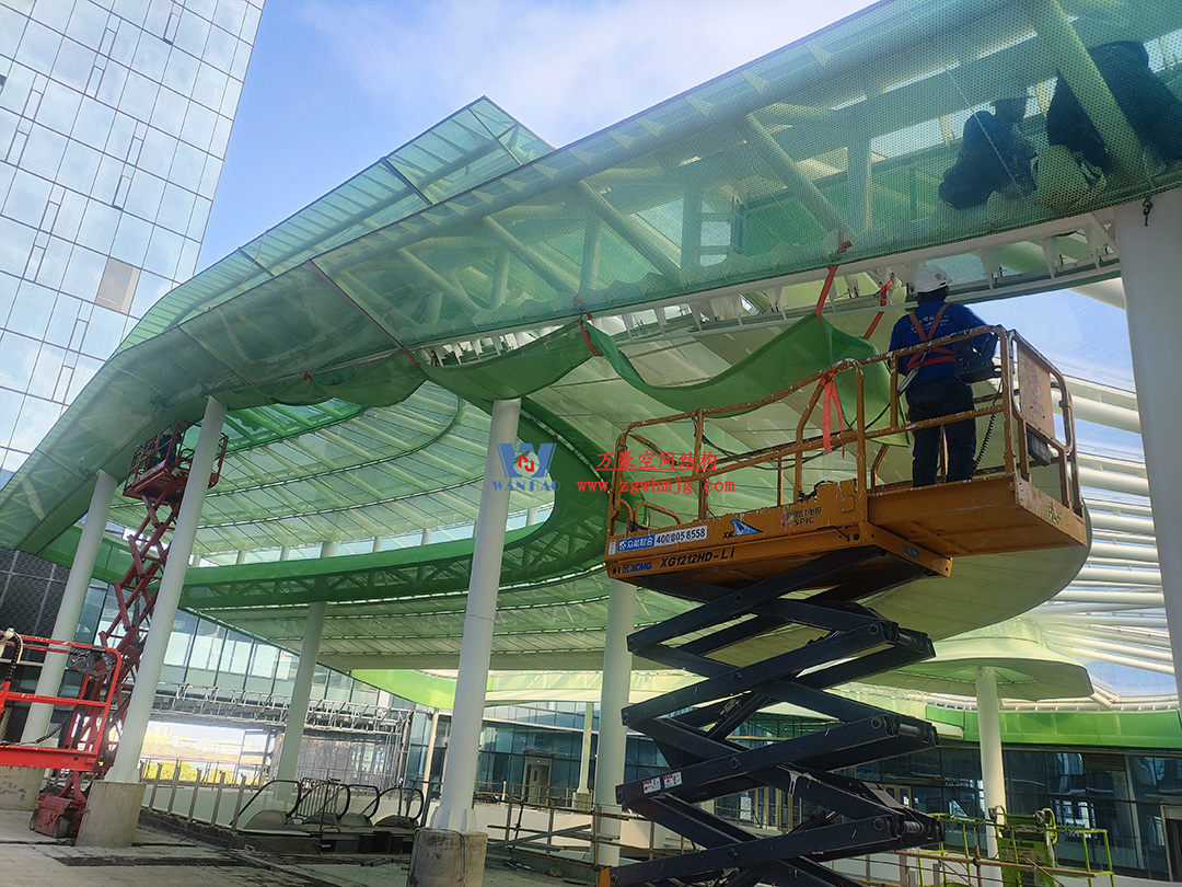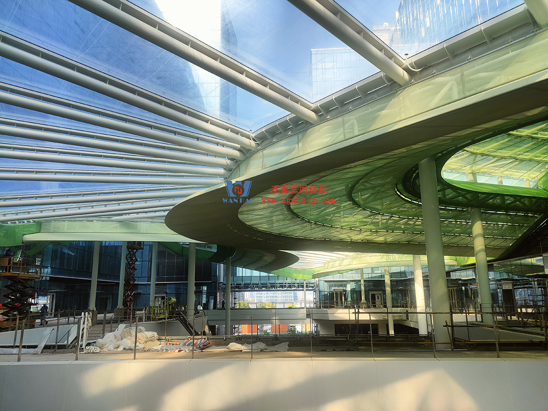 博多森谷項目中庭鋼膜結構工程位于余杭區(qū)良渚板塊,地處杭州城北,良渚未來核心區(qū),城西科創(chuàng)大走廊輻射圈。該項目用鋼量約689噸,ETFE+網(wǎng)格織物膜展開面積12000平方米。