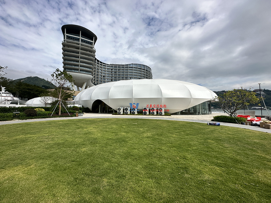 京基大梅沙酒店多功能活動(dòng)廳鋼膜結(jié)構(gòu)工程,該項(xiàng)目用鋼量約240噸,ETFE膜+PTFE膜展開面積約2834平米。