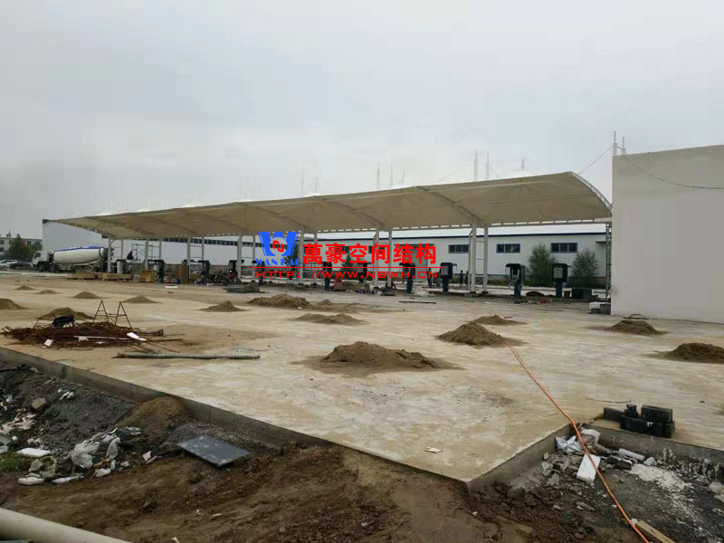 內(nèi)黃縣公交充電樁膜結(jié)構(gòu)車棚工程位于河南省安陽市內(nèi)黃縣龍翔物流公交站內(nèi),由寧波萬豪空間結(jié)構(gòu)工程有限公司承建。本工程使用的是白色pvc膜材,膜結(jié)構(gòu)展開面積2300平米,用鋼量65噸,共計70個車位。