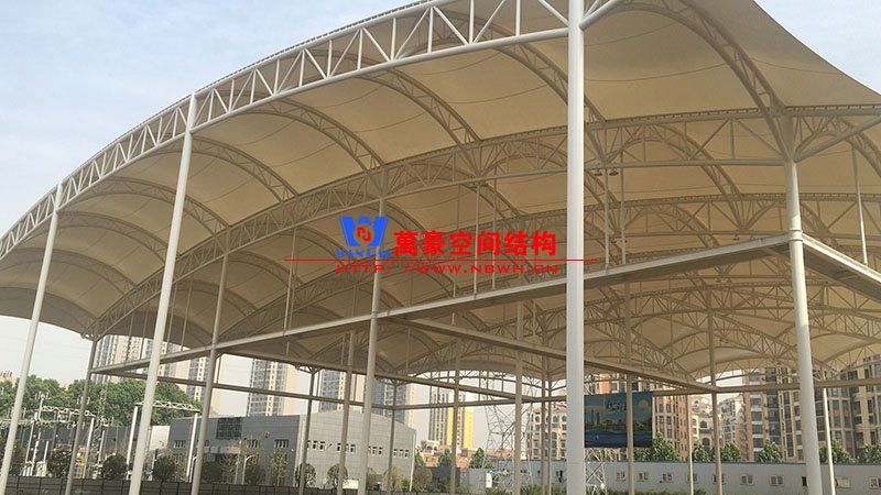 國家電網(wǎng)公司不停電作業(yè)(河南)實(shí)訓(xùn)基地膜結(jié)構(gòu)晴雨棚項(xiàng)目,由寧波萬豪空間結(jié)構(gòu)工程有限公司承建。該項(xiàng)目膜結(jié)構(gòu)展開面積9000平米,用鋼量500噸。