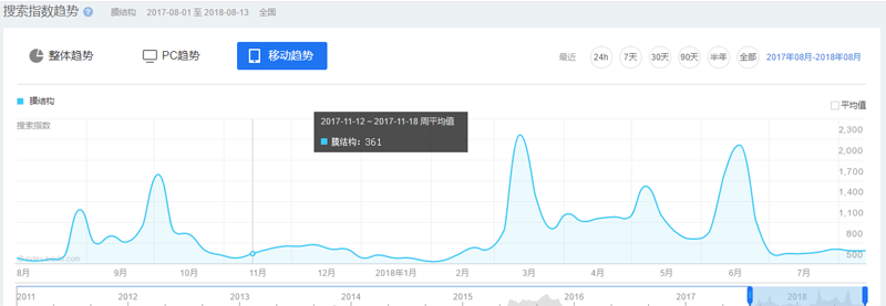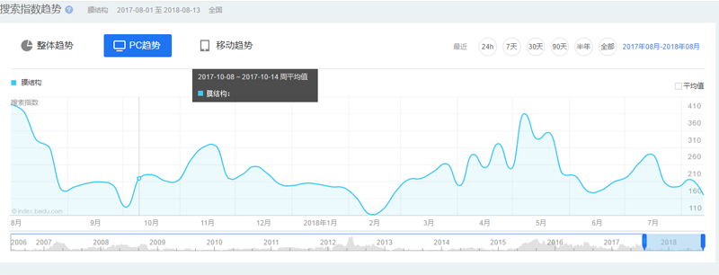最后,就是中國膜結(jié)構(gòu)網(wǎng)的熱度趨勢了。近些年來,膜結(jié)構(gòu)行業(yè)在中國穩(wěn)步提升,每年的旺季分別在3到6月份,以及8到10月份,所以想做膜結(jié)構(gòu)的伙伴們可以選擇這個時(shí)段去做哦。