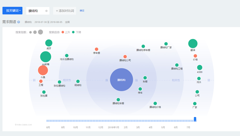 其次,從需求圖譜分析,我們可以發(fā)現(xiàn)中國膜結(jié)構(gòu)網(wǎng)內(nèi)呈上升趨勢的幾個詞,分別是膜結(jié)構(gòu)公司、停車棚、工程、價(jià)格,這組數(shù)據(jù)代表著客戶做膜結(jié)構(gòu)工程時(shí)著重關(guān)注的幾個要點(diǎn)。我們不難發(fā)現(xiàn),當(dāng)季熱門的膜結(jié)構(gòu)建筑為車棚類工程,在選擇公司的同時(shí),價(jià)格也是一個參考點(diǎn),在這里,萬豪友情提醒大家一下,一分價(jià)錢一分貨,別一味追求廉價(jià)而忽略質(zhì)量,找到性價(jià)比最高的才是最劃算的。
