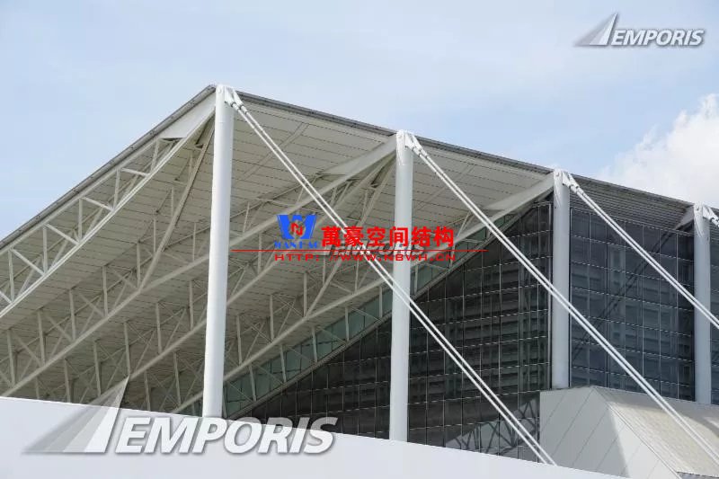 沃爾夫斯堡汽車城主題公園的看臺挑棚,從外表看仿佛是一整塊實體的懸挑,實際上它是空腹桁架結(jié)構(gòu),整體懸挑了25米。