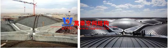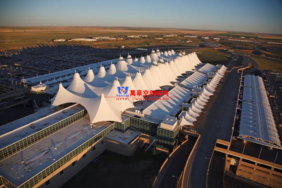 除了以上相對比較常見的結(jié)構(gòu)類型,還有一些是不太常見的樣式,且基本上只此一例別無他家。如丹佛機(jī)場則采用了膜結(jié)構(gòu),潔白的膜層層疊疊與遠(yuǎn)處的雪山交相呼應(yīng),建筑效果很特別。那為何很少有機(jī)場大范圍采用膜結(jié)構(gòu)呢?可能和膜結(jié)構(gòu)的熱工性能和使用年限有關(guān)系,夏熱冬冷不節(jié)能。同時膜結(jié)構(gòu)對形態(tài)的適應(yīng)性比較差,需要特定的建筑樣式才能遷就膜結(jié)構(gòu),而不像鋼結(jié)構(gòu)基本能適應(yīng)任何建筑造型。因此建筑師如果想選擇膜結(jié)構(gòu),需要和結(jié)構(gòu)工程師在早期有更多的溝通。
