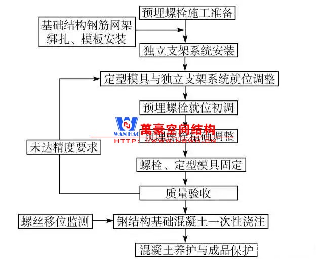 鋼結(jié)構(gòu)預(yù)埋螺栓的工藝流程圖如圖 1 所示。