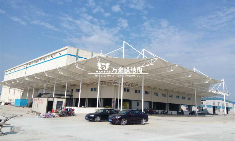 嘉善索菲亞家居膜結(jié)構(gòu)工程就位于嘉善縣的嘉善經(jīng)濟(jì)開發(fā)區(qū)隆全路上。整個項目總用鋼量達(dá)到了約120噸,膜布投影面積3000㎡。
