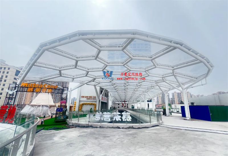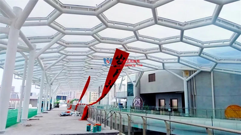 廣州茂名總匯天街商業(yè)街ETFE膜結(jié)構工程地處電白市區(qū)繁華CBD路段,毗鄰電白萬達廣場,2萬平方城市購物中心化商業(yè)街區(qū),配套星級酒店及地下智能停車場。該項目ETFE膜結(jié)構展開面積約為2000平方米。