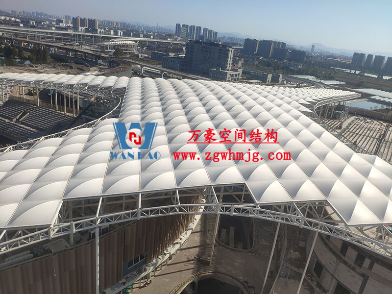 杭州亞運(yùn)會棒(壘)球體育文化中心項目位于浙江省紹興市,總建筑面積16萬平方米、總投資約18億元。該項目頂部材料選用高自潔PTFE膜材,膜結(jié)構(gòu)展開面積合計20000平米。