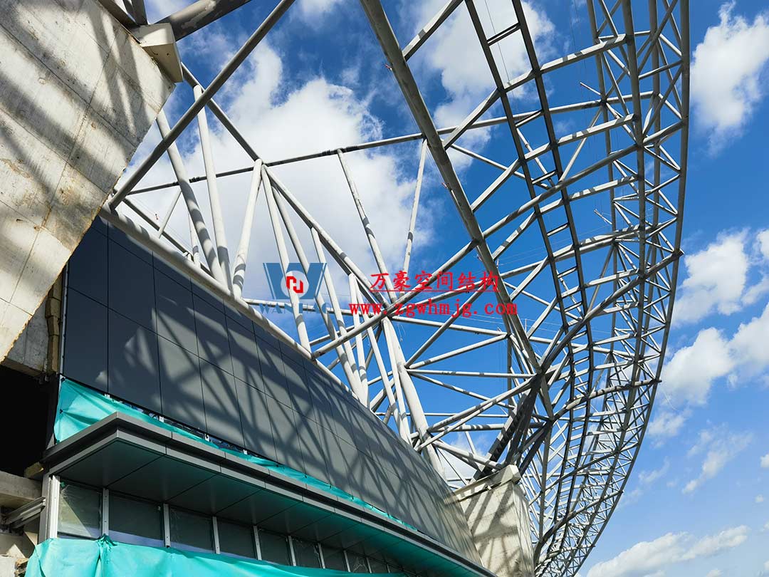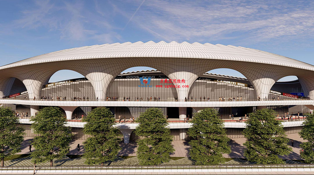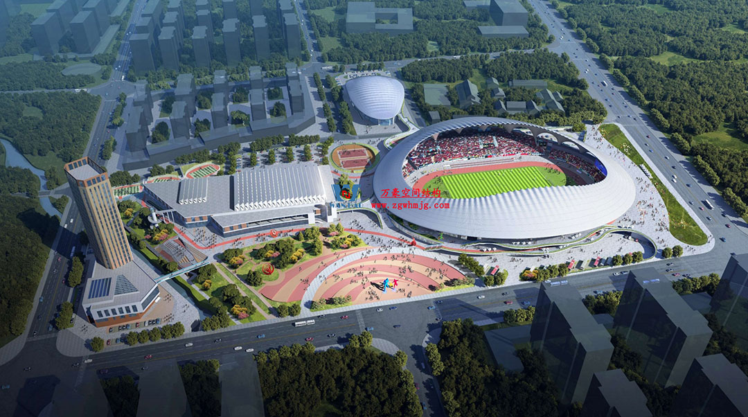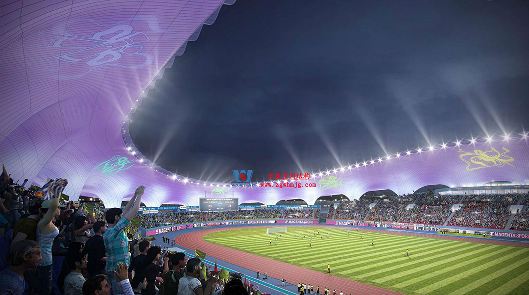 山東蓬萊體育場坐落于煙臺黃渤海新區(qū)蓬萊示范區(qū),該體育中心占地約200畝,總建筑面積5.6萬平方米。蓬萊體育場以“漂浮的仙島”為設計理念,運用龍骨優(yōu)化與雙曲鋁板單元化裝配工藝,以連續(xù)曲面構成主體造型,頂部采用雙層PTFE膜材張拉完成,42500平方米流線型穹頂,以靈動曲線呼應黃海波濤