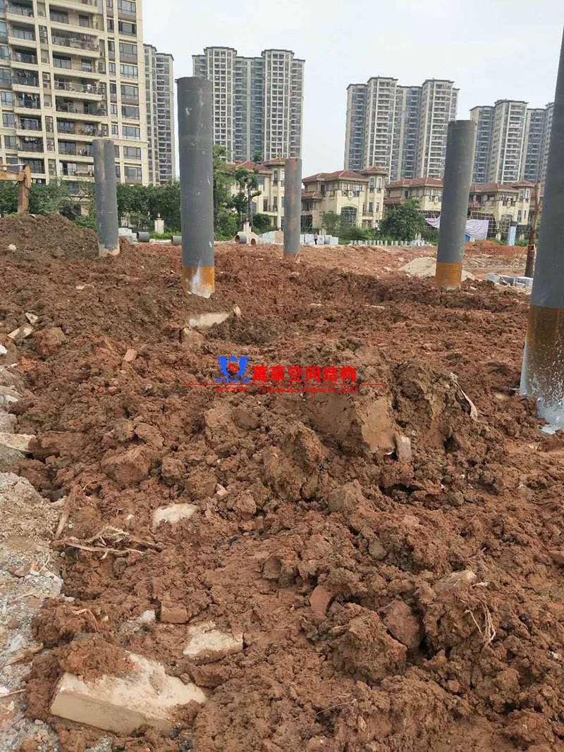 廣場鋼拉膜項(xiàng)目由六個(gè)龍船花造形景觀組成,每個(gè)龍船花景觀造形立柱的高度不得低于3.80米,花瓣造形最低高度 7.54米,花瓣造形最高高度9.608米,膜結(jié)構(gòu)屋面材質(zhì)為 PTFE網(wǎng)格基布雙面貼透明ETFE建筑膜材。目前立柱已安裝完成,準(zhǔn)備開始安裝其它構(gòu)件。
