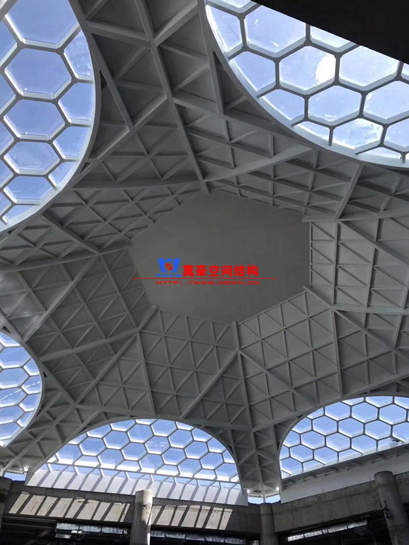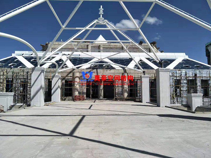 目前觀光塔鋼構已完成五層,六個連廊已完成四個吊裝,穹頂及二樓斜屋面已基本完成。