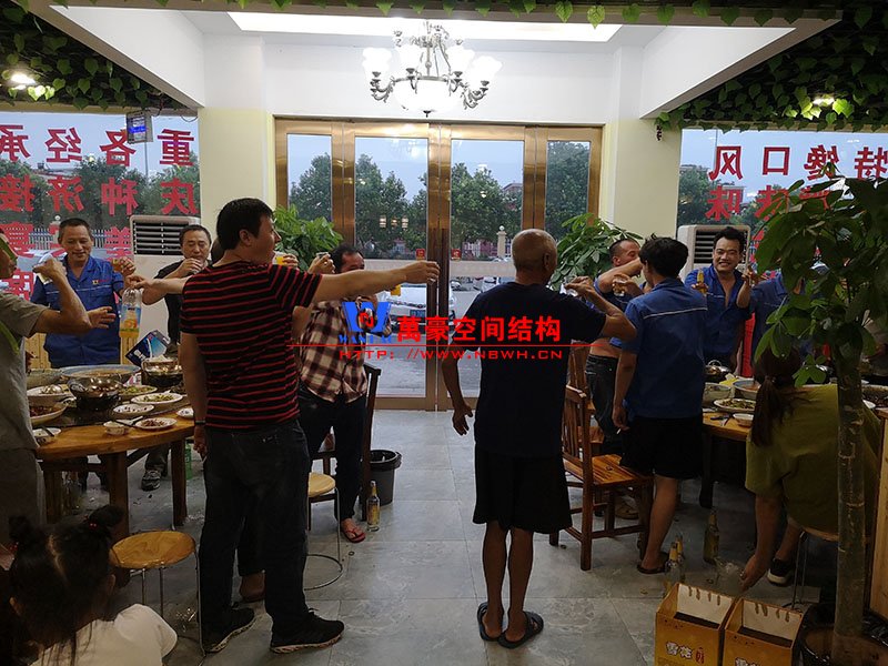 中秋節(jié)假期馬上就要過去了,想必大家都玩的挺開心吧。不知道你們的中秋是怎么過的,是與家人團(tuán)聚,還是與朋友歡聚呢?萬豪膜結(jié)構(gòu)就不一樣了,我們是整個(gè)工廠員工歡聚一堂,共進(jìn)晚餐,喜迎中秋。 雖然來自五湖四海,相聚在萬豪,大家就是一家人,我們會(huì)為了我們的共同目標(biāo)一起前進(jìn)。