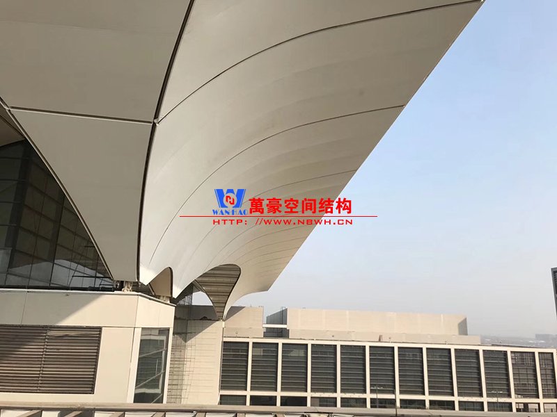 首先,我們觀摩學(xué)習(xí)了青島紅島國(guó)際會(huì)展中心PTFE反吊膜結(jié)構(gòu)項(xiàng)目,該項(xiàng)目施工已正式結(jié)束。
