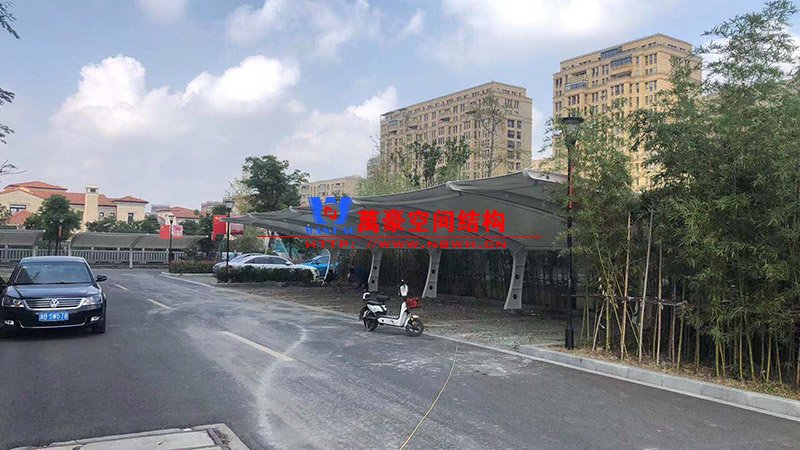太屺3#地塊商務(wù)樓(慈溪市國力土地資源投資開發(fā)有限公司)地面膜結(jié)構(gòu)車棚項(xiàng)目位于浙江省寧波市慈溪市,該項(xiàng)目膜結(jié)構(gòu)展開面積2000平米,用鋼量50噸,由寧波萬豪空間結(jié)構(gòu)工程有限公司承建。