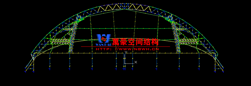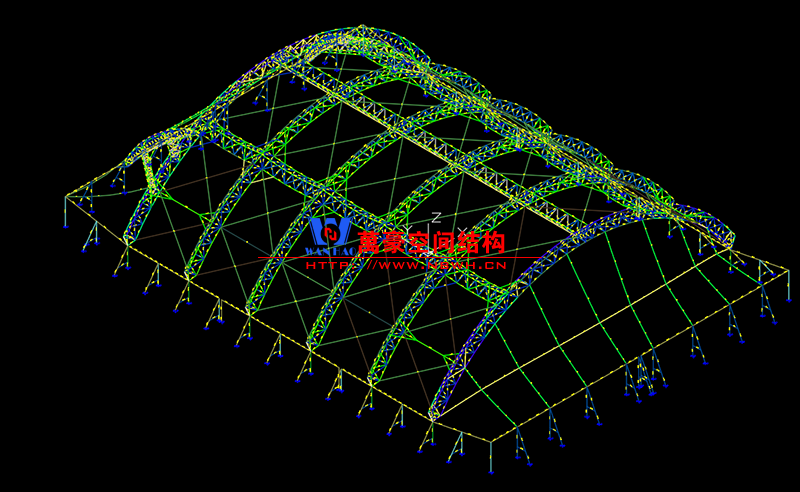 該項(xiàng)目因響應(yīng)國(guó)家環(huán)保要求,以煤炭罩棚加蓋。因儲(chǔ)煤場(chǎng)內(nèi)部設(shè)施、設(shè)備特定運(yùn)轉(zhuǎn)需要,對(duì)于罩棚的跨度與高度都有特殊要求,跨度、高度通風(fēng)采光。項(xiàng)目的鋼、膜、索全部由我公司設(shè)計(jì)、施工與安裝。?