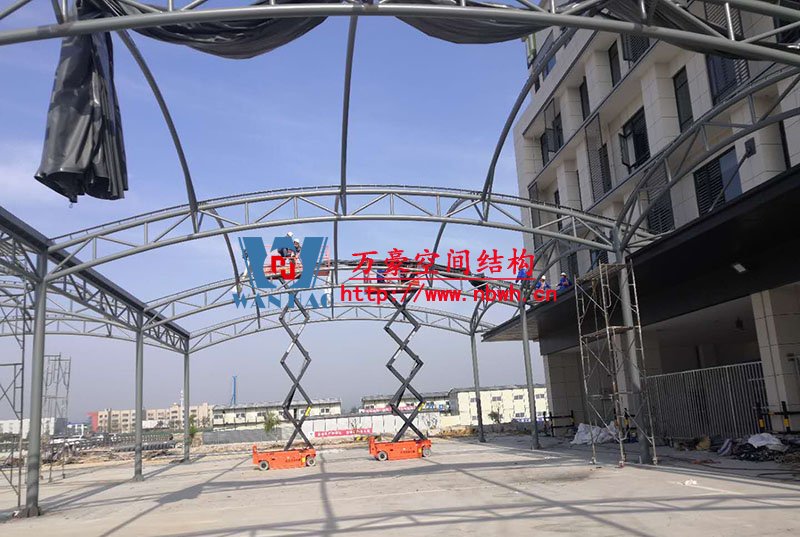 目前,該膜結(jié)構(gòu)工程的鋼結(jié)構(gòu)工程部分已完成并經(jīng)初步驗收,膜結(jié)構(gòu)進入安裝階段。 期待整個工程的完工,來領(lǐng)略它別致的風(fēng)采。