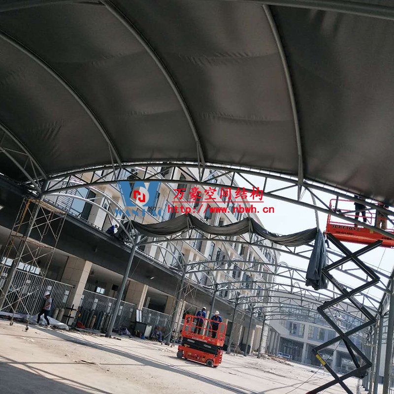 奉化方橋農(nóng)副鋼結(jié)構(gòu)雨棚工程位于浙江省寧波市奉化市內(nèi),此工程用鋼量100噸,膜結(jié)構(gòu)展開面積3500平米,由寧波萬豪空間結(jié)構(gòu)工程有限公司承建。