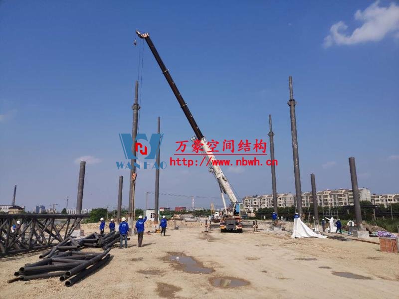 紹興福全高速收費(fèi)站頂棚工程用鋼量60噸,由寧波萬(wàn)豪空間結(jié)構(gòu)工程有限公司加工和安裝。 目前,項(xiàng)目鋼結(jié)構(gòu)安裝完成。 期待整個(gè)工程的完工,來(lái)領(lǐng)略它別致的風(fēng)采。