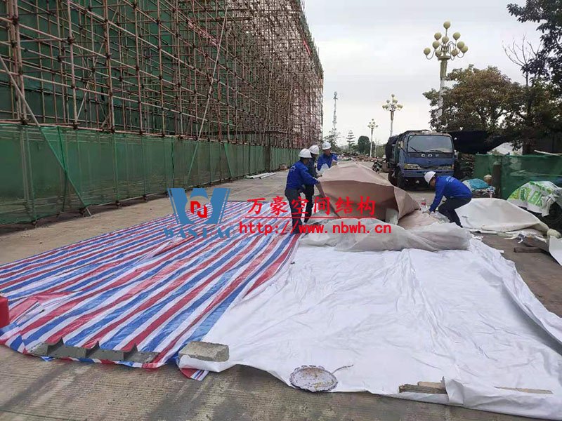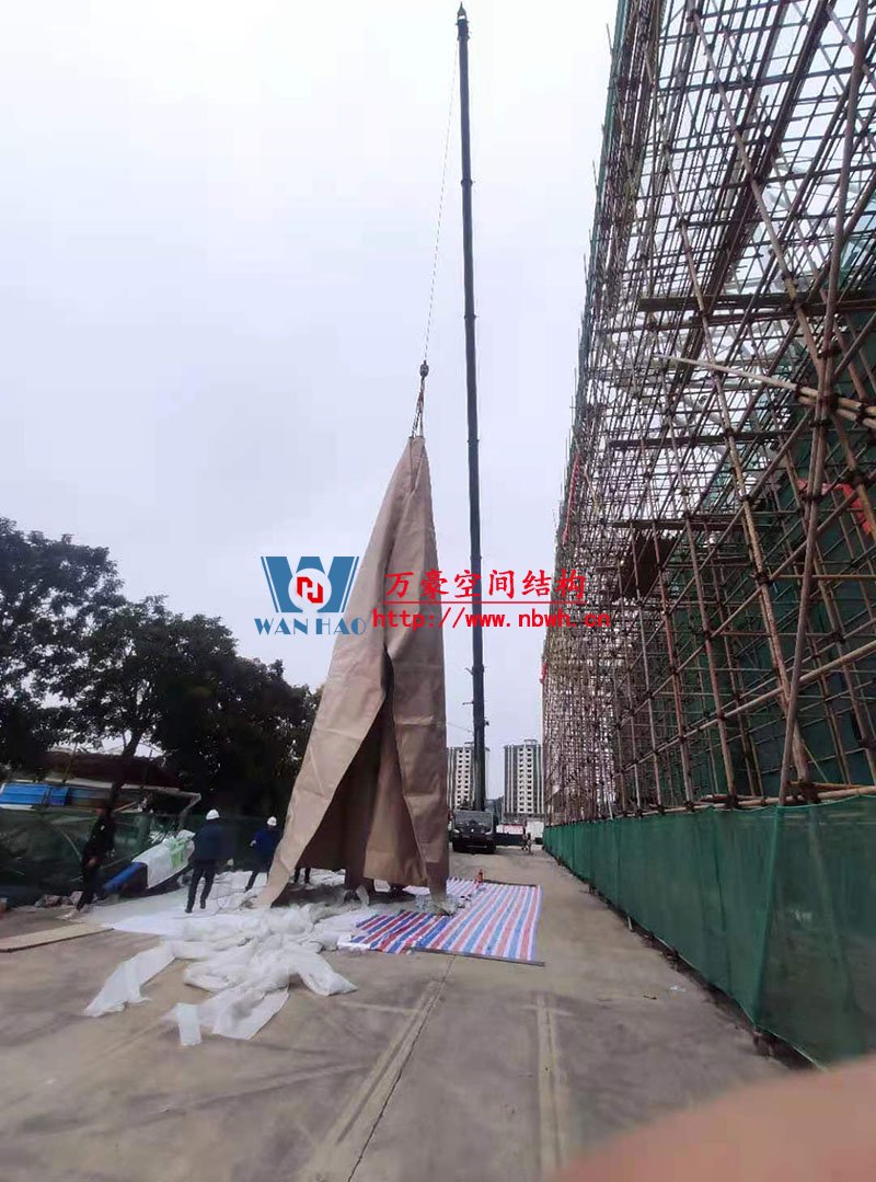 汕尾市體育中心(一期)工程田徑場(chǎng)膜結(jié)構(gòu)項(xiàng)目位于廣東省汕尾市,PTFE膜結(jié)構(gòu)展開(kāi)面積5000平米,由寧波萬(wàn)豪空間結(jié)構(gòu)工程有限公司承建。 目前,該項(xiàng)目的鋼結(jié)構(gòu)工程部分已完成,進(jìn)入膜結(jié)構(gòu)安裝階段。 期待整個(gè)工程的完工,來(lái)領(lǐng)略它別致的風(fēng)采。