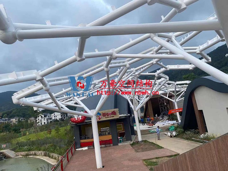 樂(lè)清鐵定溜溜樂(lè)園膜結(jié)構(gòu)工程位于浙江省溫州市樂(lè)清市,項(xiàng)目鋼膜結(jié)構(gòu)雨棚包括6號(hào)商業(yè)街蜂窩狀ETFE膜結(jié)構(gòu)、檢票口PTFE膜結(jié)構(gòu)、售票口PVDF膜結(jié)構(gòu)。
