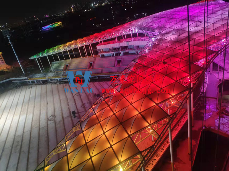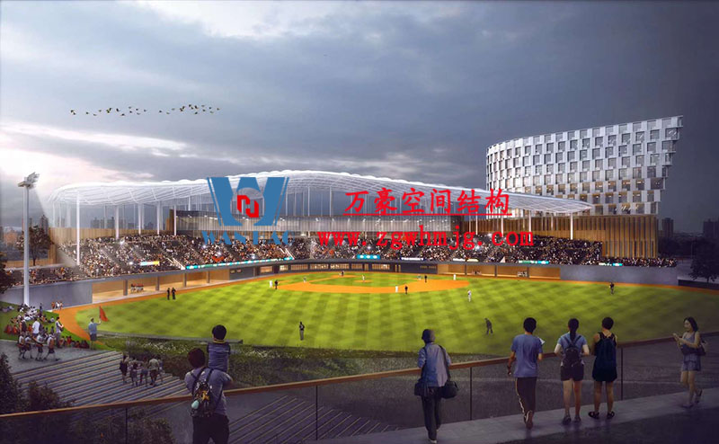 杭州亞運會棒(壘)球體育文化中心項目位于浙江省紹興市,總建筑面積16萬平方米、總投資約18億元。該項目頂部材料選用高自潔PTFE膜材,膜結構展開面積合計20000平米。