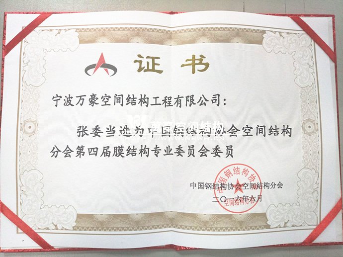 恭賀我司總經(jīng)理張委當(dāng)選膜結(jié)構(gòu)專(zhuān)業(yè)委員會(huì)委員