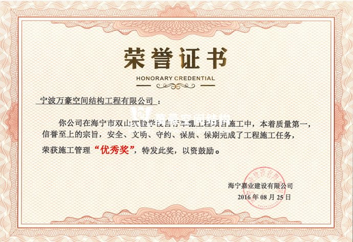 海寧實驗學校車棚項目榮獲“優(yōu)秀獎”