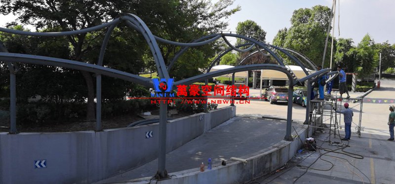 嘉善客運(yùn)中心膜結(jié)構(gòu)雨棚項(xiàng)目施工中