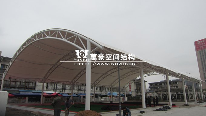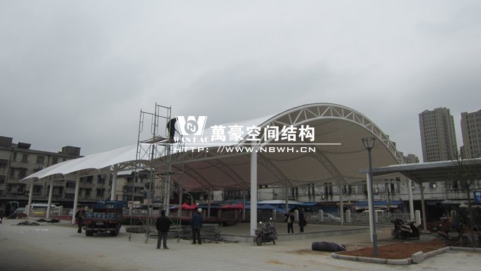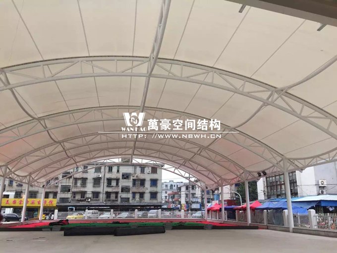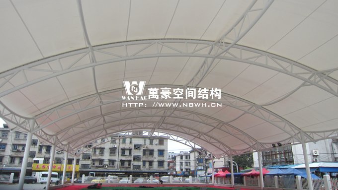 寧波市鎮(zhèn)海區(qū)駱駝街道菜市場膜結(jié)構(gòu) 福建霞浦東方偉業(yè)廣場膜結(jié)構(gòu)加蓋 橫店夢幻谷海豚館鋼膜結(jié)構(gòu)