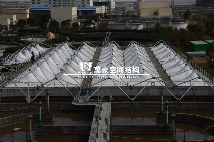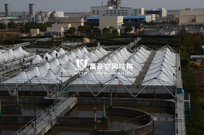 寧波北區(qū)污水處理廠廠址位于鎮(zhèn)海新泓口甬舟高速與化工區(qū)主干道交叉口附近,污水廠一期建設(shè)用地15.48公頃,膜結(jié)構(gòu)加蓋面積達一萬多平方米。