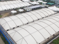 平湖衛(wèi)星石化污水廠膜結(jié)構(gòu)加蓋密封系統(tǒng)工程項目膜結(jié)構(gòu)展開面積2000平米,用鋼量35噸,由寧波萬豪空間結(jié)構(gòu)工程有限公司承建。